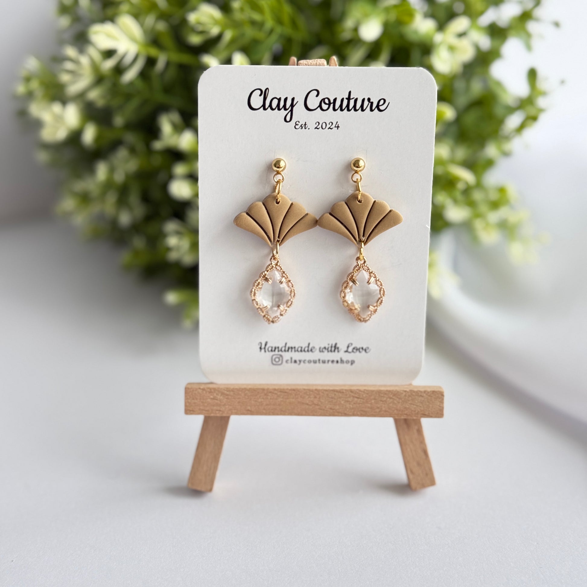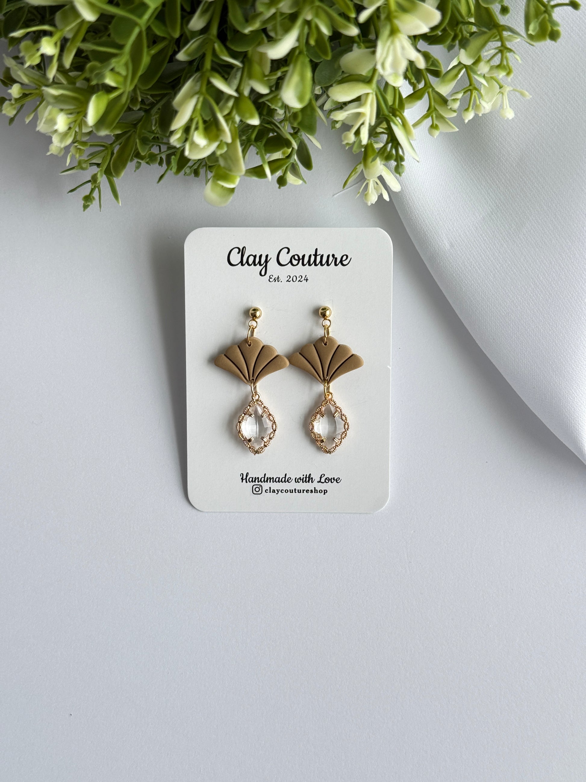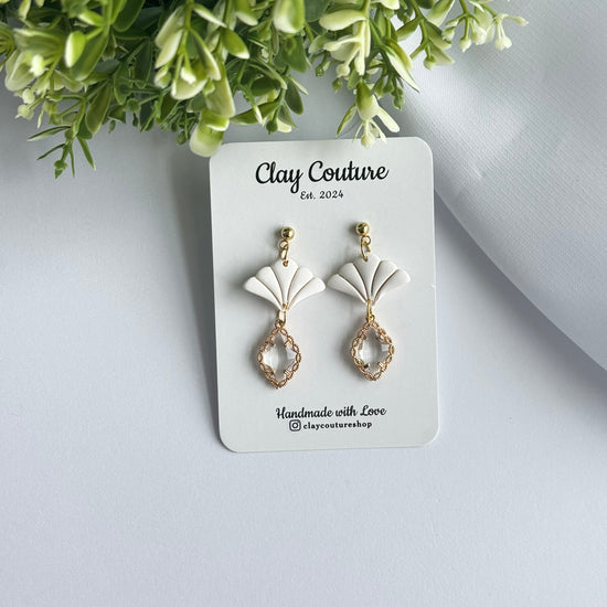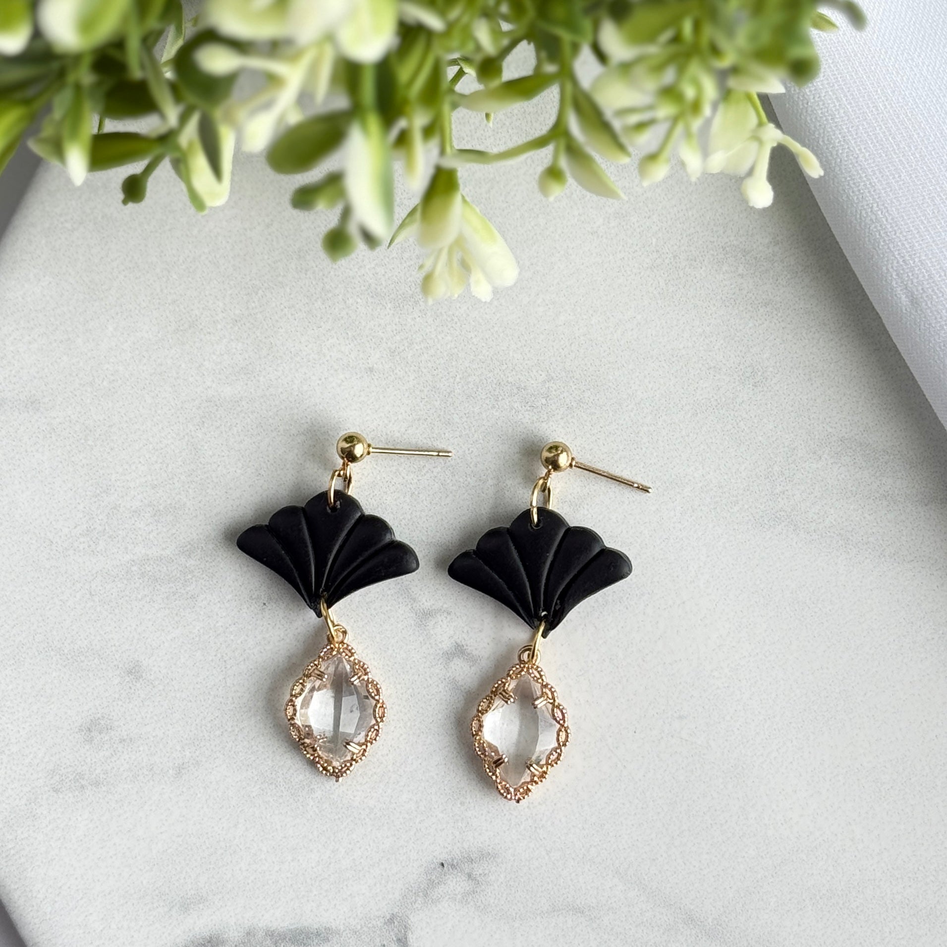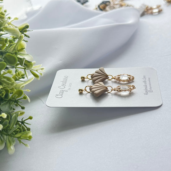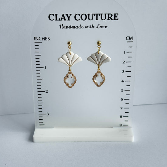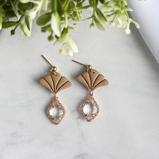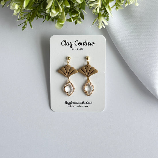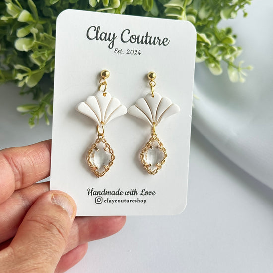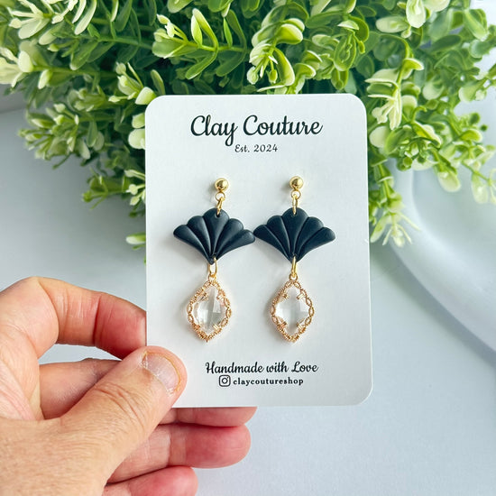 Add effortless elegance to your everyday style with our Aurora Fan Drop Earrings, a timeless blend of modern design and handcrafted beauty. Thoughtfully handmade from high-quality polymer clay, these earrings feature a delicate fan silhouette paired with a faceted crystal-style drop for a soft, luminous finish.