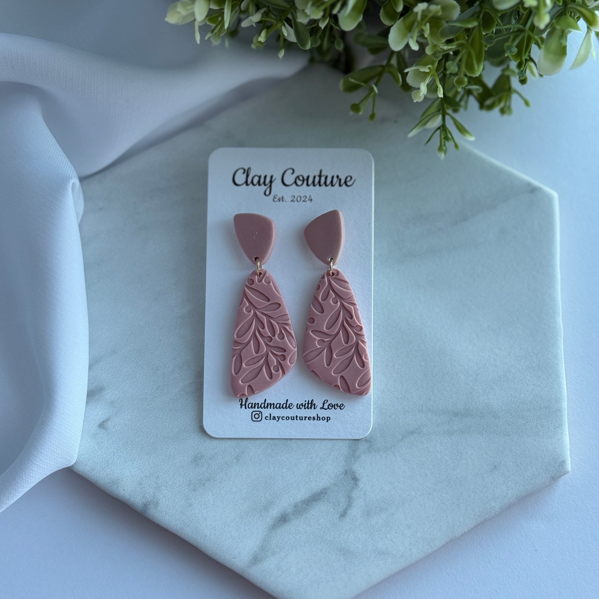 Angela Embossed Drop Polymer Clay Earrings – Lightweight Statement Earrings