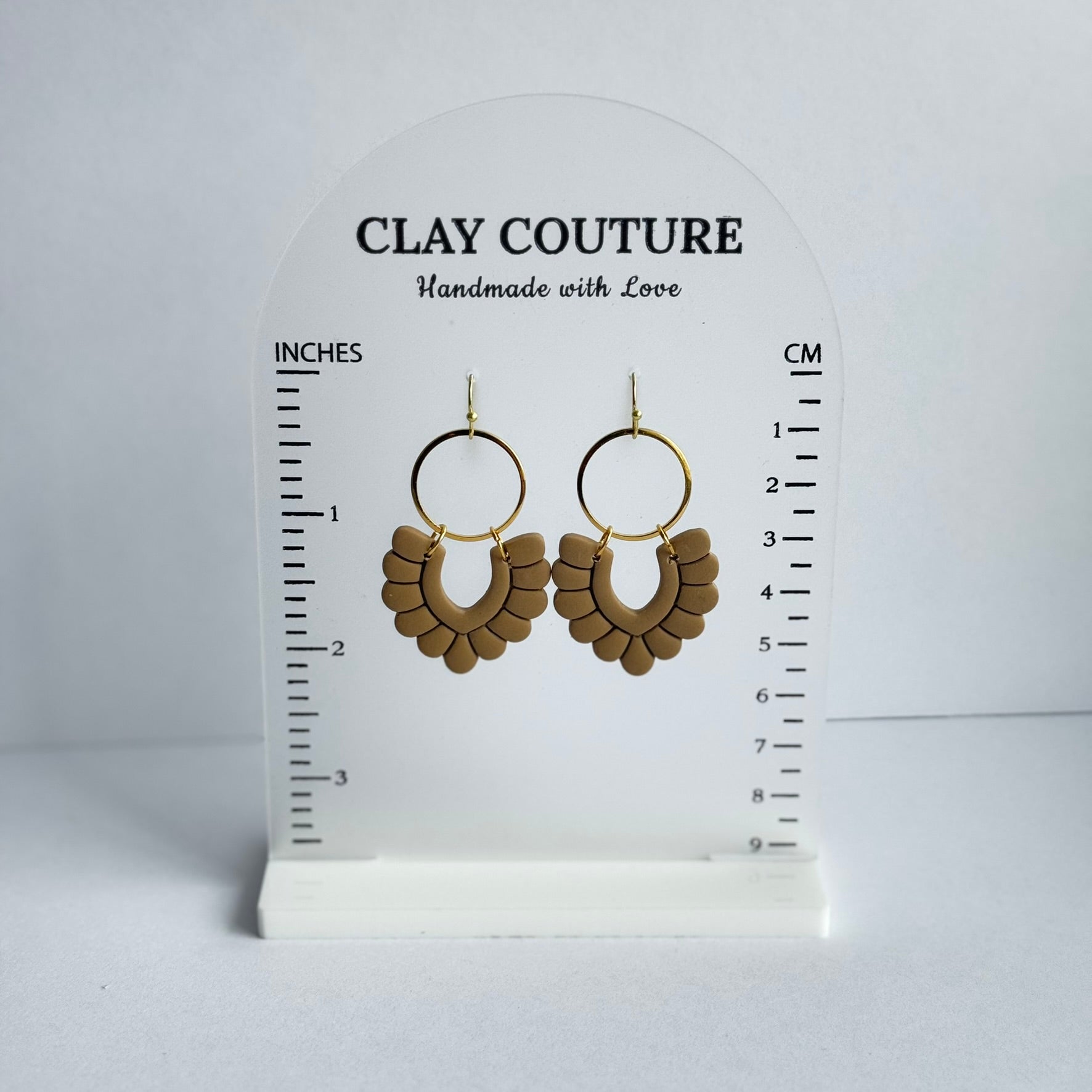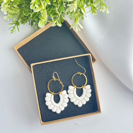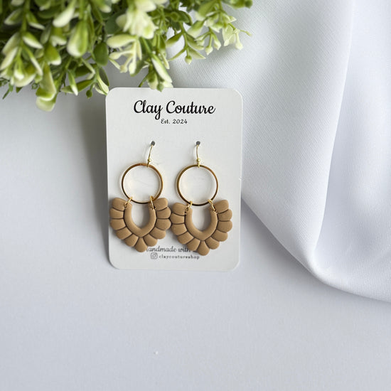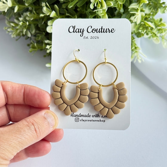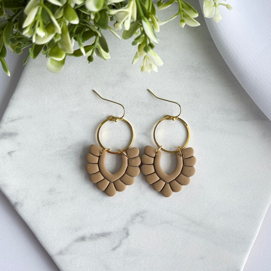 Elevate your everyday style with these handmade neutral polymer clay earrings, designed to blend modern elegance with effortless wearability. Featuring a soft arch-shaped clay design paired with a gold-tone hoop, these earrings add just the right amount of statement without feeling heavy.